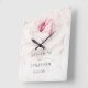 Modern Rosa ros Blommigt Bride Groom Namn Bröllop Fyrkantig Klocka