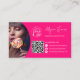 Ett modernt och djärvt enkelt affärskort för konstnärer och hårstilar med överdimensionerad namn längst fram i ett handskrivet stil-teckensnitt och foto, fyrkantig kod och social-media längst bak på hettens nyaste rosa. Alla färg är redigerbara.