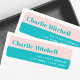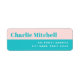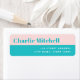 Returetiketter i ljust rosa och turkos akvafblått. Typsnitt och färg kan anpassas med verktyg.