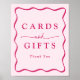 Lägg till en snyggt till bröllop, möhippa, babydusch, studentfest eller annan speciell händelse med den här moderna Rosan Vågigt Ram-kort och presentkort. Konstruktionstecknet "Cards and Gifts" i fetstil med rosa omgiven av en rosa vågigt gräns kontrasterar mot en ljus rosa bakgrund. Anpassa tecknet för styrkort och presentationer med anpassningsbarna nedan. Välj mellan utskriftsalternativ för professionell eller alternativ för omedelbar nedladdning, vilket ger dig möjlighet att göra det enkelt.