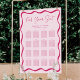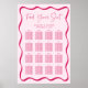 Behålla din sittplan klar med den här moderna Rosan Vågigt att sätesschemat för Ram Bröllop Poster. En ljus rosa bakgrund med fetstilt rosa vågigt gräns ramar upp till 16 bord, där gäst namn är upptagen under varje rubrik. Uttrycket "Hitta ditt säte" visas överst i handskript, med namn och bröllop när du är klar med designen. Tillgänglig som professionell eller omedelbar nedladdning att skriva ut i hemmet.
