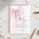 Det eleganta tackkortet "Pink Watercolor Bow" utstrålar en sofistikerad och romantisk charm och sätter en polerad och hjärtlig ton för din tacksamhet efter firandet. Med en fantastisk, överdimensionerad akvarellslinga i en delikat dammrosfärgad nyans fångar denna design vackert essensen av modern feminin grace. De mjuka, genomskinliga lagren av slingan ger en känsla av eterisk rörelse och skräddarsydd lyx till din personliga brevpapper.