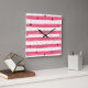 Den här chicens fyrkantiga klocka har en rosig rosa och vit vattenfärgsstrimlad bakgrund med en smatning av simulerad överdel av konfetti guld. Om du behöver hjälp kan du skicka e-post till niteowlstudio@gmail.com.