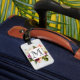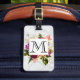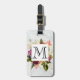 En personlig med bagagemärke med ett enda monogram brev på framsidan och din personliga information på baksidan. Designad med en söt vattenfärgsdesign. En blommigt som är arrangemang av många olika blomsorter i rött, rosa och vitt färg och partier av lövhaltig grönt. Ett ram överst med faux-guld-foil gräns. Utformning av klass och elegant. En benvit marmor mönster-bakgrund.