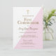 Grattisar på ditt barns första gemenskap. Denna händelse är något som bör uppmärksammas och firas. Jag har designat den här första sambobjudan med faux guld-detaljer och typografi med rosa accent triangulär beröring. Elegant-skript typsnitt, utskrivet guld kor och en lättanvänd mall för använda, anpassar inbjudan till din dotters speciella dag. Inkludera hans namn och händelseinformation. (ändra färg genom att vid behov anpassa ytterligare verktyg)