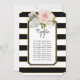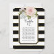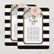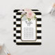 Dessa platstilldelskort kan användas vid varje bord eller i entrén till er mottagning. De är ett billigt sätt att lägga till glamour och glans till er mottagning! Dessa bordsnummerkort kan ramas in, placeras på en hållare eller användas på många andra sätt för att dirigera era gäster till deras platser vid er formella bröllopsfest, brudvisning eller formella företagsaktivitet. Ändra helt enkelt bordsnummer och gästlista för varje kort och lägg det i er varukorg. Här visas kortet med plats för 10 per bord, men ni kan anpassa listan efter era behov och helt enkelt dra och centrera listan när ni är klara med hjälp av funktionen "anpassa". Denna design har en handmålad blomsterdesign med rosor i blek rosa, krämfärgade små vita rosor och frisias blommor. Lövverk i modern stil läggs till med hjälp av blad från suckulenter i mintgrågrön färg. En bakgrund med breda svarta och vita ränder är ihopparad med en ram i art deco-stil med utsk
