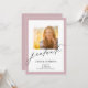 Denna eleganta examensfestinbjudan erbjuder två fotoramar, en på framsidan och en andra på baksidan. Designen är accentuerad med trendig handstils text och en dammig ros färgad kant. Personifiera baksidan med din festinbjudans detaljer.