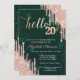 Modern Rose Gold Glitter Drips Green 20th Birthday Inbjudningar