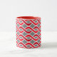 Kaffe mugg i en modern utformning av sammanflätat rosett band i skuggor av djup läppstift, accentuerad med vitt, på en grafitbakgrund av grått / grått