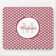 Ge din kontorsstil en modern kant med denna grafiska röda och för vitfiskfjäll för kammusslan för mönster mousepad som du kan personifiera, genom att tillfoga din initiala namn och monogram till. Denna moderiktiga geometriska snäckamönsterdesign sätta en klocka på, yet snyggten.