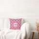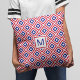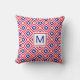Denna moderna kudde har ett geometriskt mönster i rött, marint blått och vitt. Anpassa den med ett monogram i matchande blå skuggning.