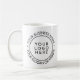 This modern round business custom logo coffee and tea is an excellent choice for any small business owner looking for a professional custom product to promote their company and attract more clients. Create your own with our simple, classic template! The logo design features a circular shape with your custom logo centered. Your business name is at the top, and your slogan or website can be replaced at the bottom. You can also write your address there. The logo design repeats on the other side, divided by a simple text template, which you can use to write your social media handle. Press the "Personalize this template" button and replace all details with your information. The mug is completely customizable. If you need to fit more information, you can change the font size and make other adjustments through ''Edit using the design tool''. Perfect to promote your business, wheter is a coffee shop or other. Coffee and tea lovers will love it!