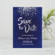 Modern Royal Blue och Silver Confetti Spara Datumet