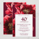 Modern Ruby Red and Guld Blommigt 40-årsdagen Inbjudningar