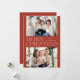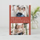 Modern julfotokort med "God jul" som visas i mitten av designen i trendiget med vit text med rost bakgrund. Anpassa det enkla julkortet med dina foton från familjen namn och två vågräna. Kortet återgår till visningen med en rost bakgrund med subtila vita prickar (snö).