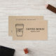 Minimalistiskt förmånskort för kaffe med en enkel utformning som visar en bild av ett sött kaffe kopp med ett hjärta över en brun papper bakgrund. På baksidan finns din kontaktinformation.