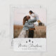 Ett Modern Rustic God jul 2 Photo Helgdag Card med svart och vitt Julgranar, modern manusgrafi och pappert struktur. Baksidan är ett brevlådevykort med ett andra foto och ett längre personligt meddelande. Klicka på knappen Redigera om du vill anpassa designen med foton och detaljer.