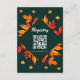 Rustik men modern design med höst löv i röda nyanser, orange och gult mot en mörk grönt bakgrund i säsong