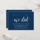 Modern rustic, marinblå script-inbjudningskort (med korttitel: åh ja, vi gjorde det). Det är perfekt för din bröllopsfest / efterbröllopsfirande. Lägg till dina detaljer i matchande svart teckensnitt.