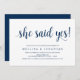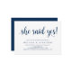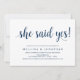 Snygg Modern vackra Rustic-design, i marinblått skript, inbjudan till Förlovningsfest i Bröllop (hon sa JA). Inbjudningskort för perfekten, för förlovningsfesten firande. Lägg till information i matchande teckensnitt/text. #TeeshaDerrick