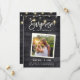 Modern förlovning av bilder från roligt med foto i ram på en baksida av mörk med strängen ljus och ett handskript med texten SURPRISE! Vi har engagerade! Utrymme för information som datum för att spara datumet, bröllop webbplats osv. på framsidan och baksidan.