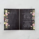 rustik chic vintage blomster kritbröllopsinbjudningar och landsbygdens svarta tavla bröllopsgåvor.