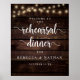 Modern Rustic, Wedding Rehearsal Dinner Welcome Poster, in cottage evening string lights, dark wood themed.