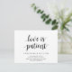 Det här är det minsta moderna, rena designtemat, svart teckensnitt, Bröllopsfestens inbjudan Omschemalagd vykort (uppskjuten/uppskjuten) (kärlek är patient). Det är perfekten och eleganten som gör det möjligt att lägga om meddelandet till vänner och familj.