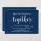Vacker modern vacker rustik design, i marinblå script, Bröllopsförlovningsfest inbjudan kort (Dela lyckan tillsammans). Det perfekta inbjudningskortet för din förlovningsfest. Lägg till dina detaljer i matchande teckensnitt / bokstäver.