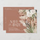 Modern lada farmhouse botaniska botaniska blommigtar bohemiskt pampas-gräs och eucalyptus botanical bröllop spara datum-postinbjudan. blommigt av elegant i vattenfärg i terracotta, sage grönt, kräm och svarta färgkanaler. Utrymme på baksidan av den här budgeten, bröllop spara datum för information och QR-kod för all information om bröllop.
