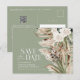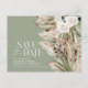 Modern lada farmhouse botaniska botaniska blommigtar bohemiskt pampas-gräs och eucalyptus botanical bröllop spara datum-postinbjudan. blommigt av elegant i vattenfärg i terracotta, sage grönt, kräm och svarta färgkanaler. Utrymme på baksidan av den här budgeten, bröllop spara datum för information och QR-kod för all information om bröllop.