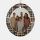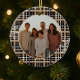 Elegant modern landsbygd rustik svart och tan-rutmönstrad flanelldesign med ett anpassat fotområde och anpassningsbar familj. namn och år utformat för en rund ornamentform!