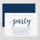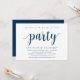 Modern Rustik, Marinblå Script-tema inbjudningskort (med korttitel: Party efter lyckligt slut). Det är perfekt för din bröllopsfest / efterbröllopsfest. Lägg till dina detaljer i matchande svart teckensnitt / bokstäver.