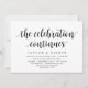 Modern Rustik, Svart Skrift tema inbjudningskort (med kort titel: firandet fortsätter). Det är perfekt för din bröllopsfest / efterbröllopsfest. Lägg till dina detaljer i matchande svart teckensnitt / bokstäver.