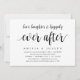 Modern Rustik Söt, Svart Teckensnitt Manuskript-tema inbjudningskort (med kort titel: Kärlek, skratt och Lyckligt Alltid). Det är perfekt för din bröllopsfest / efterbröllopsfirande. Lägg till dina detaljer i matchande svart teckensnitt / bokstäver.