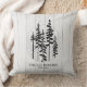 Den här festliga, mysiga farmhouse-stilens kastkudde har en handmålad silhuett av tallskog på falskt vitt farmhouse-trä bakgrund. perfekt present till nygifta & första julen gifta eller husvärmegåva. Copyright Anastasia Surridge för The Christmas Shop, alla rättigheter förbehållna.