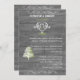 Denna roliga design, kallad Modern Rustic Barn Wood Anniversary, har en tvättad grå brädgårdsmönsterbakgrund. Det finns en vit rullande kalligrafisk design upptill och nertill och ett vackert filigran-hjärta med en pil som skiljer brudens och brudgummens namn åt. Lite längre ner på vänster sida finns en trädgrafik i vitt och sellerigrönt. Texten är i vitt och selleri- eller limegrönt för att verkligen sticka ut från inbjudan. Perfekt för din rustika country western- eller utomhusbröllopsjubileum eller -fest.
