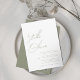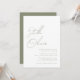 Modern kalligrafi-grönt med minimal och enkel sage-elegant-kalligrafi med namn i den moderna typografbröllopsinbjudan med QR-kod längst bak i inbjudan.
