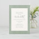 This green gingham couples shower invitation pairs a classic plaid border with soft, modern typography for a look that feels both vintage and fresh. The clean layout keeps it light and unfussy, while the timeless pattern adds warmth and charm. Perfect for a relaxed yet thoughtfully styled celebration that feels cozy, welcoming, and beautifully put together.