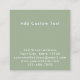 Personalize this minimalist sage green business card template. Customize the modern white script with your name and contact information. Add your photograph to the photo template. Add your business or corporate address for a stylish professional business card. The muted sage green or eucalyptus green is trendy. The minimalist script can be edited with your custom text.