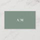 This sleek, modern square business card features a solid sage green background on the front with space for your photo, name, title, and contact info in a clean serif font, giving it a polished and professional look. The back keeps the sage green background and showcases a white initial monogram for a simple, refined finish. Minimal, versatile, and fully customizable, it’s a sharp and stylish choice for any professional.