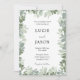 Den här moderna, elegant- och eucalyptus-inspirerade designen fångar på ett vackert sätt det känsliga och romantiska innehållet i detta unika botaniska ämne. Med en rad olika nyanser för lush-grönt ökar detaljerna i bröllop till djup och sofistikering. Den här fullständiga mallen för anpassade är designad för att imponera på gästerna och som en omhuldad keepy. Perfekt för modern trädgård, rustik eller grönt temat bröllop, det blandar sömlöst naturskönhet med konstnärlig elegans. Anpassa med din information om du vill skapa en personlig och snyggt biet för din speciella dag.