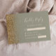 Det moderna kant i bröllop OSA-djurutrymmets lämnar elegant har ett guld faux glitter gräns. Anpassadet kombinerar elfenbenshandskrift, tryckplåt och kursivt typsnitt mot bakgrund av en grönt. Den omvända sidan har en matchande sidstorlek och guld-grönt.