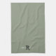 Modern Sage Grönt Monogram Script Initial Namn Kökshandduk