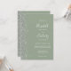 Den här elegantens lämnat kant har en modern bröllopsinbjudan i silver i glitter. Anpassadet kombinerar vit handskrift, tryckplåt och kursivt typsnitt mot bakgrund av grönten. Den omvända sidan har en matchande sidstorlek och silver glitter-grönt.