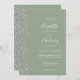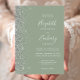Modern Sage Grönt Silver Glitter Kant Bröllop Inbjudningar