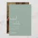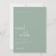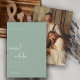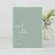 Utformningen har ett enkelt men sofistikerat skript med vita bokstäver mot en bakgrund med sage grönt som ställer in tonen och parar väl med en modern tematjänst i bröllop. Anpassa enkelt med viktiga detaljer och valfritt fantastisk-foto.