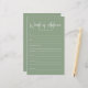 Visa din favorit mamma-to-be med hjärtlig klokhet och välmående önskemål på babyvykortet Modern Sage Oh Baby. Detta enkla men ändå elegant-rådgivningskort är perfekten för gästerna att erbjuda sina bästa råd, uppmuntran och välsignelser för de nya föräldrarna. Med sitt moderna tema är det en vacker keepsaké som kommer att skötas långt efter att barnduschen är över. Vare sig det är för första gången mamma eller för en årstidsbunden förälder, så ger kortet "Modern Sage Oh Baby" ett tänkbart sätt för de kära att sin visdom och sitt stöd under detta spännande nya kapitel.