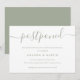 Meddela att bröllopet skjuts upp med detta minimalistiska sagegröna kort med modern typsnittsstil.