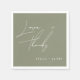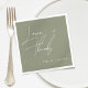 Moderna eleganta sagegröna skript "kärlek + tack" med brud och brudgummens namn pappers servetter för bröllop eller andra speciella tillfällen.